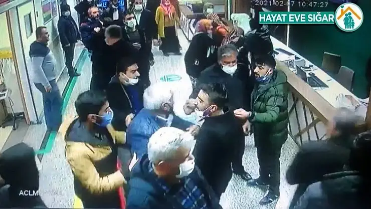 Sağlık çalışanlarına aile tarafından yapılan yumruklu, tekmeli saldırı hastanenin güvenlik kameralarına yansıdı.