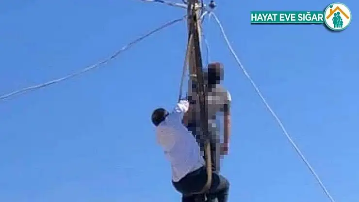 Şanlıurfa'da arızasını gidermek için çıktığı elektrik direğinde akıma kapılarak asılı kalan kişinin cesedi, ekipler tarafından indirildi.