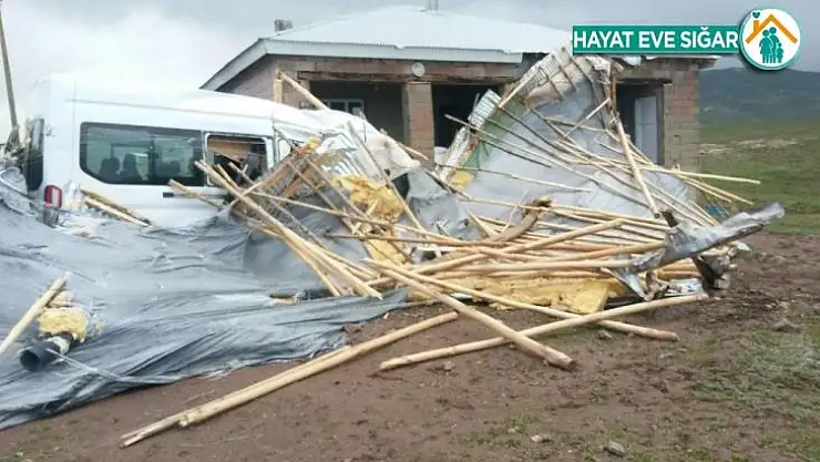 Van'ın Saray ilçesinde etkili olan fırtına nedeniyle birçok evin çatısı uçtu.