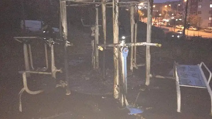 Ankara'nın Etimesgut ilçesinde bir çocuk parkı, kimliği belirsiz kişiler tarafından yakıldı.