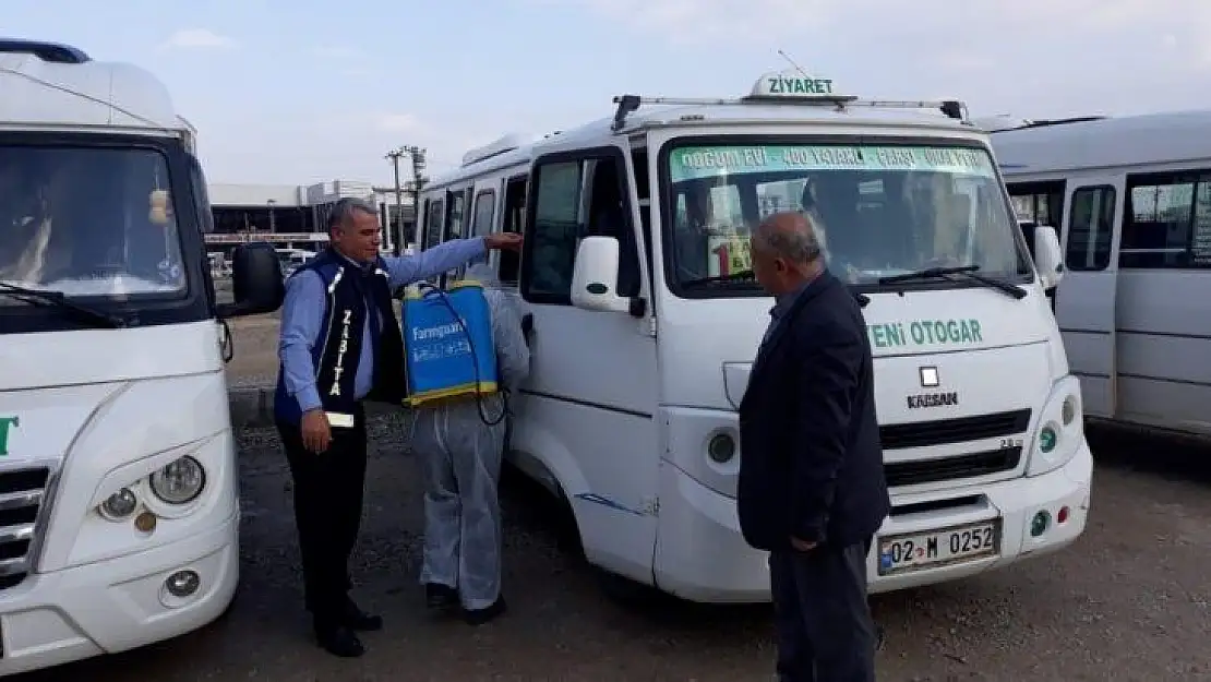 Korona virüs tedbirleri kapsamında çalışmalarını sürdüren Adıyaman Belediyesi, şehir içinde hizmet veren özel toplu taşıma araçlarında dezenfekte çalışması yaptı.