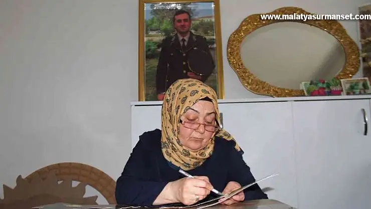 Suriye'nin İdlib kentinde 2 yıl önce teröristler tarafından döşenen el yapımı patlayıcının infilak ettirilmesi sonucu şehit olan teğmen Canbert Tatar'ın annesi Suna Tatar, Halk Eğitim Merkezi kursuna gelerek oğlunun fotoğraflarını rölyef baskı yapmaya başladı.