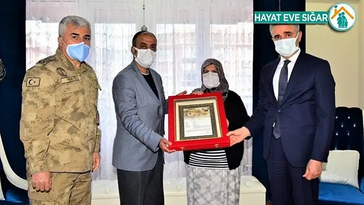 İl Jandarma Komutanı İnce de Jandarma Genel Komutanlığınca hazırlanan Taziye Mesajı ve Hizmet Anısını şehidin babası Gürsel Özbey’e takdim ederek, başsağlığı diledi.