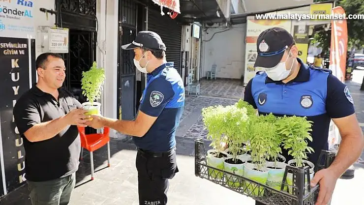Şehitkamil Belediyesi tarafından üretilen reyhan çiçeği, ilçe genelindeki esnafa hediye edildi.