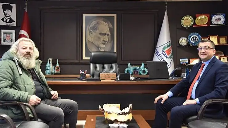 Tiyatro, sinema ve dizi oyuncusu Mehmet Elmas, Çan Belediye Başkanı Bülent Öz’ü makamında ziyaret etti.