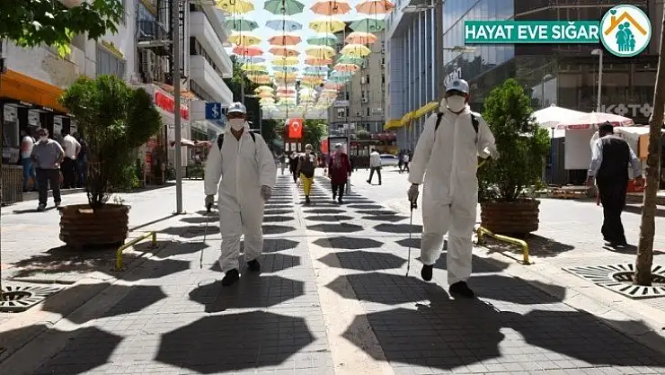 Malatya'nın uğrak yerlerinin başında gelen ve çok sayıda turistin gelerek fotoğraf çektiği Şemsiye Sokak'ta bir özel banka çalışanının korona virüs testinin pozitif çıkması üzerine halk sağlığını korumak için Battalgazi Belediyesi ekipleri harekete geçti.