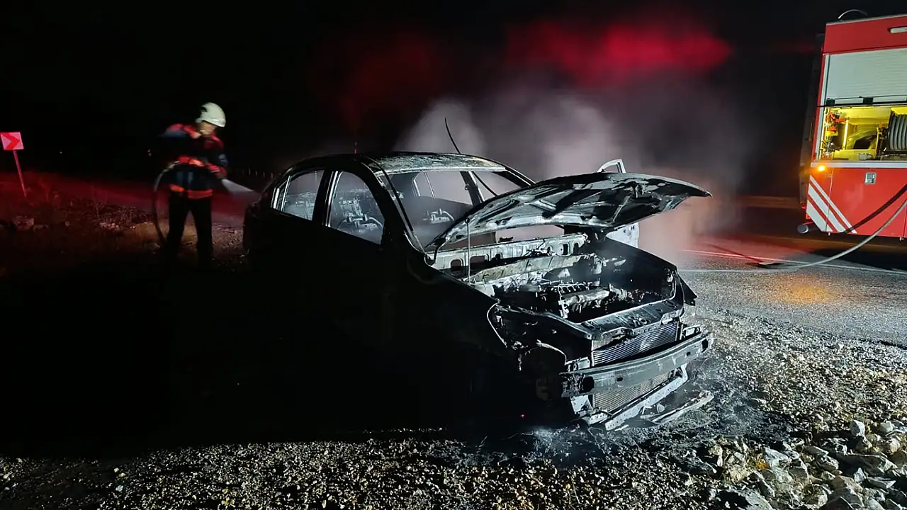 Seyir halindeki araç alev alarak küle döndü
