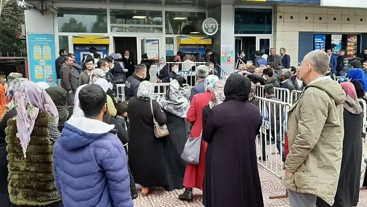 Adıyaman'da sosyal yardım parasının dağıtıldığını duyan vatandaş PTT Şubelerine akın etti. Polis, kalabalığı sosyal mesafe seviyesine getirebilmek için uzun uğraşlar verdi.