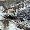 Elazığsporlu taraftarları taşıyan minibüs, kar ve buzlanmanın etkisiyle şarampole kaydı. Kazada yaralanan olmazken facianın eşiğinden dönüldü.