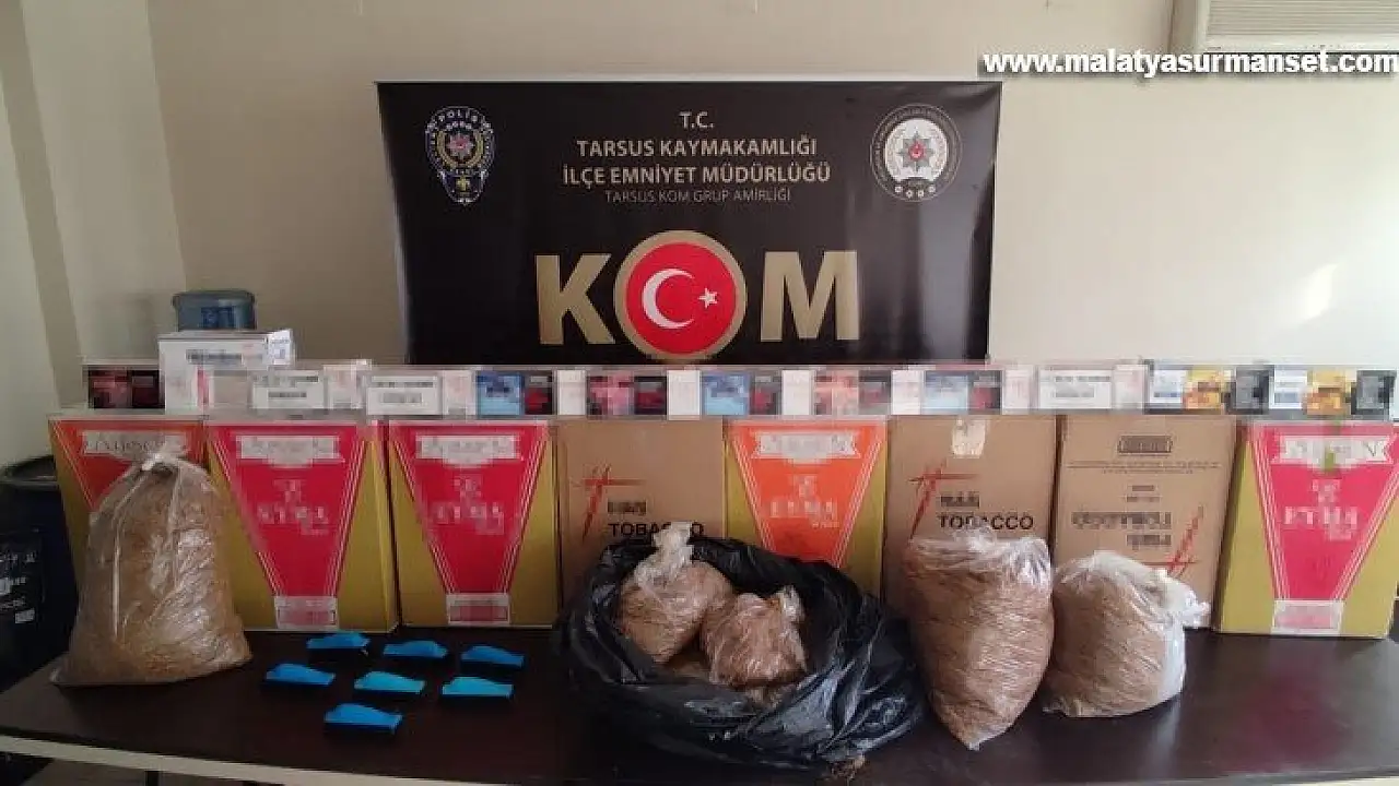 Mersin'in Tarsus ilçesinde piyasaya sürülmek istenen çeşitli markadan kaçak sigara ele geçirildi.