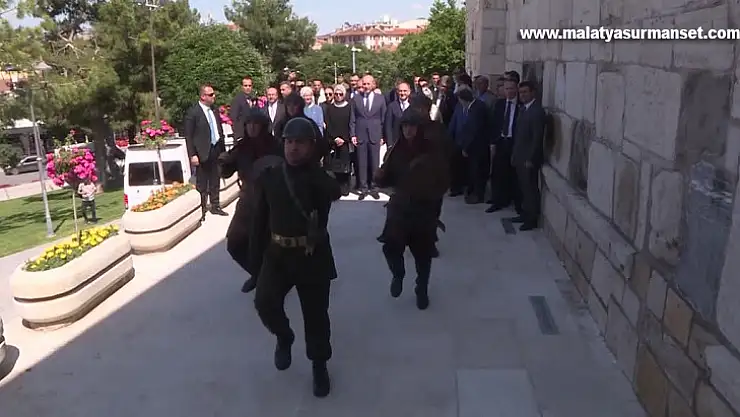 Kurtulmuş, bir dizi ziyaret için geldiği Konya'da, tarihi Alaaddin Camisi avlusunda Selçuklu Sultanları Türbesi Nöbet Değişimi Töreni'ne katıldı.