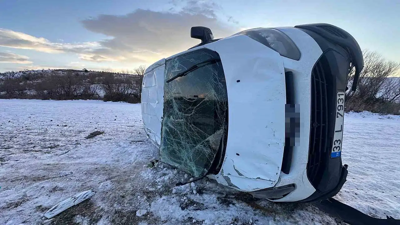 Tekeri patlayan minibüs takla attı: 4 yaralı