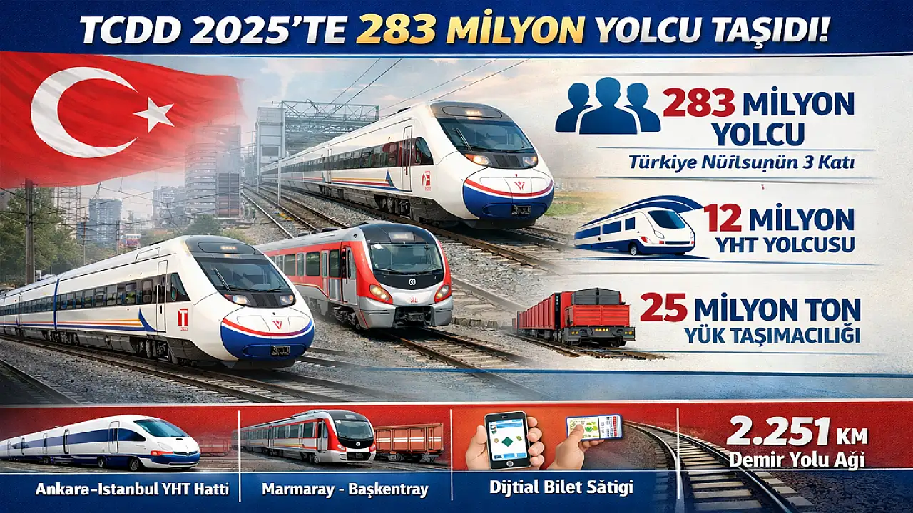 Ulaştırma ve Altyapı Bakanı Abdulkadir Uraloğlu, TCDD Taşımacılık AŞ'nin 2025 yılı boyunca yaklaşık 283 milyon yolcuya hizmet verdiğini, bu sayının Türkiye nüfusunun üç katını aştığını açıkladı.