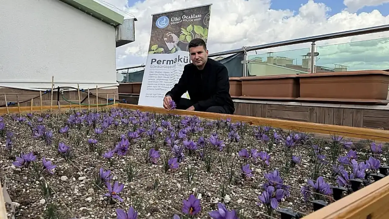 binanın terasında safran yetiştirdi. Ülkü Ocakları Genel Başkanı Ahmet Yiğit Yıldırım, çiçek