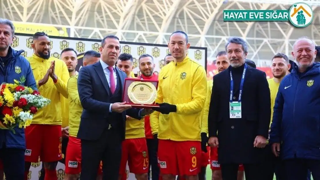 Kulüp Başkanı Adil Gevrek, Teknik Direktör Hamza Hamzaoğlu ve futbolcular, rekora imza atan Umut Bulut’a çiçek ve plaket takdim etti.