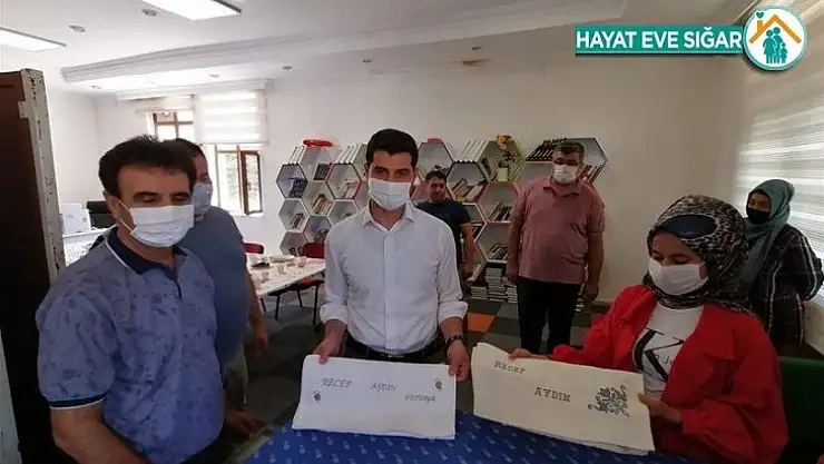 Piko makinasında üretilen ve üzerinde Kaymakam Aydın’ın isminin yazılı havlu hediye edildi.