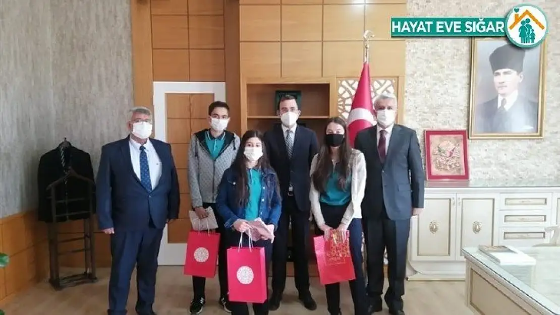 Öğrencileri makamda kabul eden Kaymakam Şimşek, öğrencilere, muhakkak bir hedeflerinin olması gerektiğini vurgulayıp, sağlıklı ve mutlu bir yaşam için bir yabancı dil, bir spor dalı yapmanın bu çağda gerekli olduğu tavsiyesinde bulundu. Hedeflerini yüksek tutmaları gerektiğini ve Kaymakamlıkça yardımcı olunacak her konuda öğrencilere gerekli imkanları sağlayacaklarını da belirten Şimşek, öğrencilere çeşitli hediyeler takdim ederek uğurladı.
