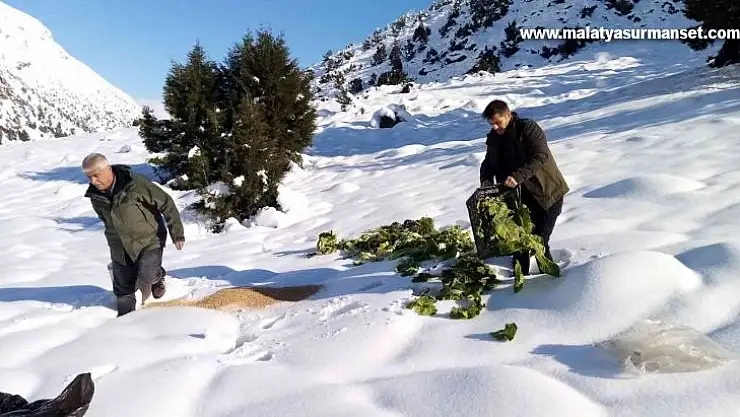 Adıyaman'da kar yağışı sonrasında yaban hayvanları aç kalmasın diye doğaya yiyecek bırakıldı.