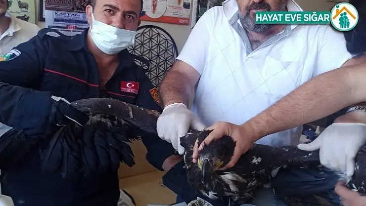 Malatya'da, yaralı kartal kurtarılarak ilçe merkezinde bulunan veteriner hekim tarafından tedavi edildi.