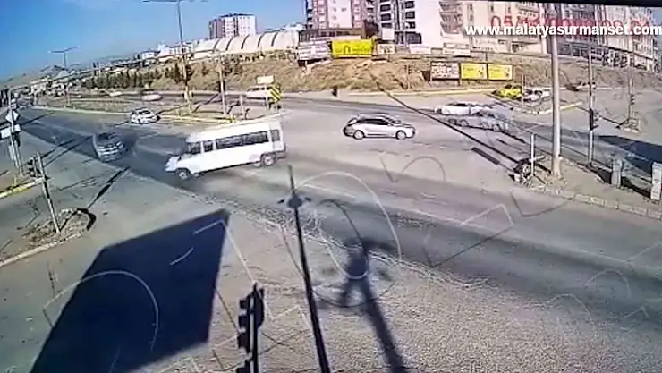 KGYS kamerasına yansıyan görüntüde, Ankara istikametinden gelen pikabın, sanayi yoluna dönen minibüse çarparak savrulduğu görülüyor. Trafik ışığı direğine çarparak durabilen pikapta ve minibüste büyük çapta maddi hasar oluşuyor.