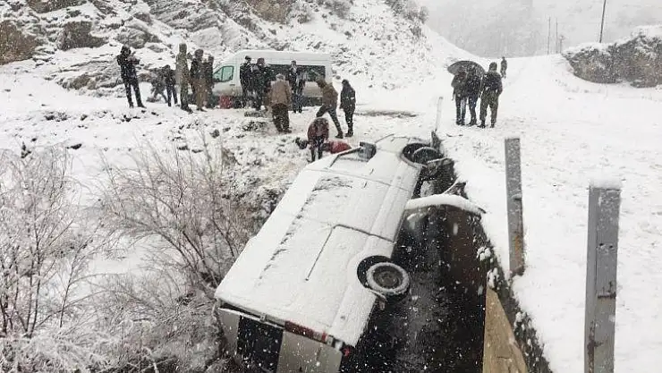 Şırnak'ın Beytüşşebap ilçesinde, kar yağışı nedeni ile kayganlaşan yolda, sürücüsünün direksiyon hakimiyetini kaybettiği yolcu minibüsü şarampole yuvarlandı. Kazada 5 kişi yaralandı.